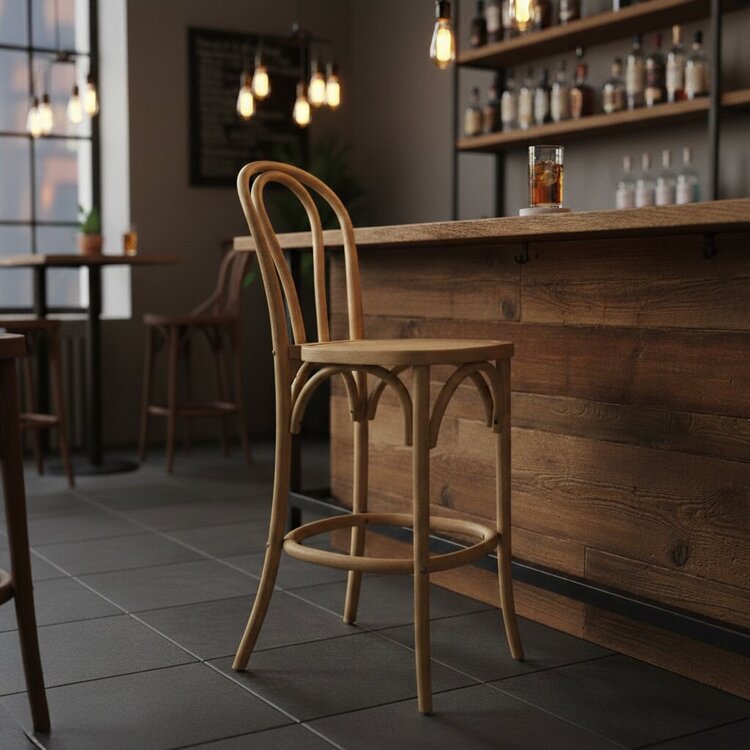 • Commercial Seating Products Bentwood Bar Stool - Tinted Raw Bar Chair - CSP - Stackable image - 1