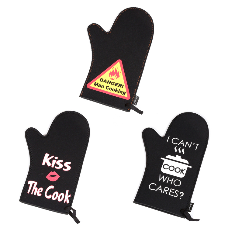 Creative Home Oven Mitt Set - Black Neoprene - 3 Piece
