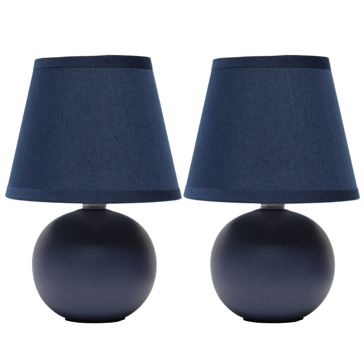• Petite Ceramic Orb Base Bedside Desk Lamp Set 2-Pack Blue Shade image - 1