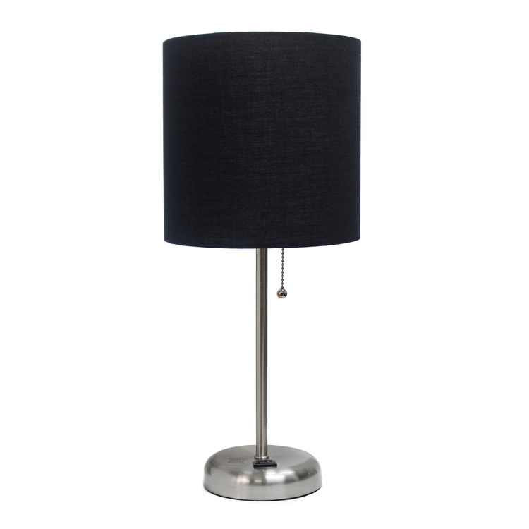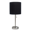 • Brushed Steel Bedside Power Outlet Table Lamp image - 1