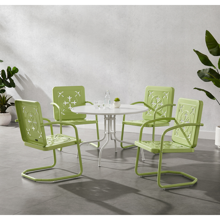 Crosley Azalea 5-Piece Round Retro Outdoor Dining Set Key Lime Gloss/White Satin - Table & 4 Chairs