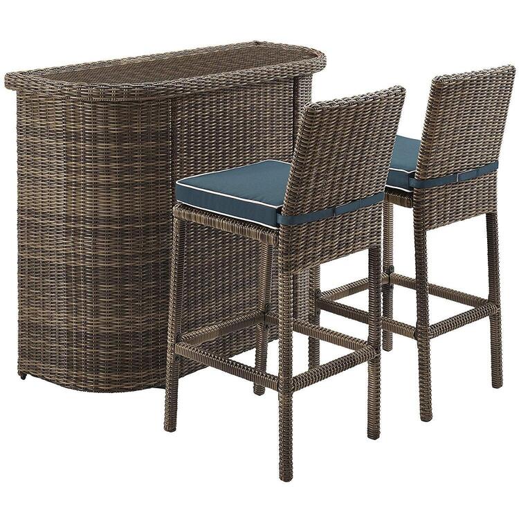 • Crosley Bradenton 3Pc Outdoor Wicker Bar Set Sand/Weathered Brown - Bar & 2 Stools image - 1