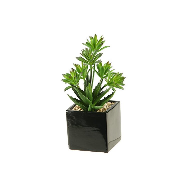 • Dracaena and Aloe Mini Indoor Plants in Square Ceramic Planter - D&W Silks image - 1