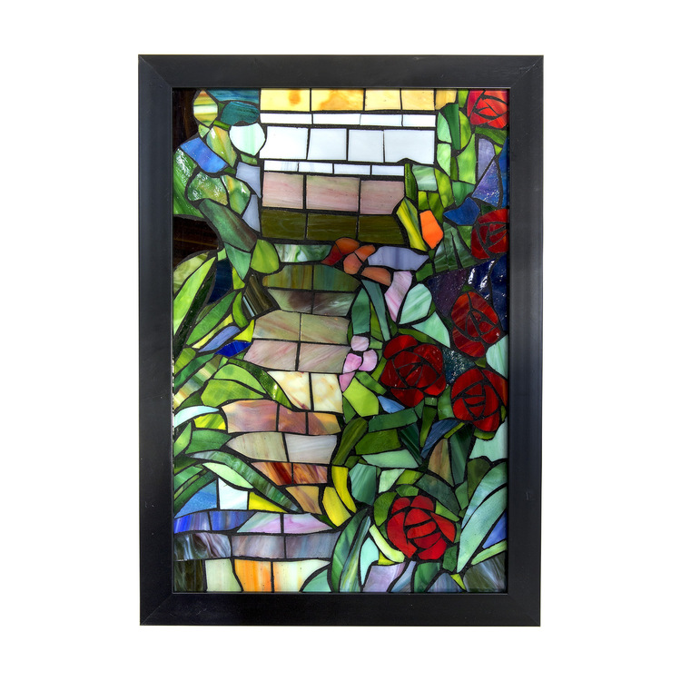 • Dale Tiffany Floral Mosaic Art Glass Wall Panel image - 1