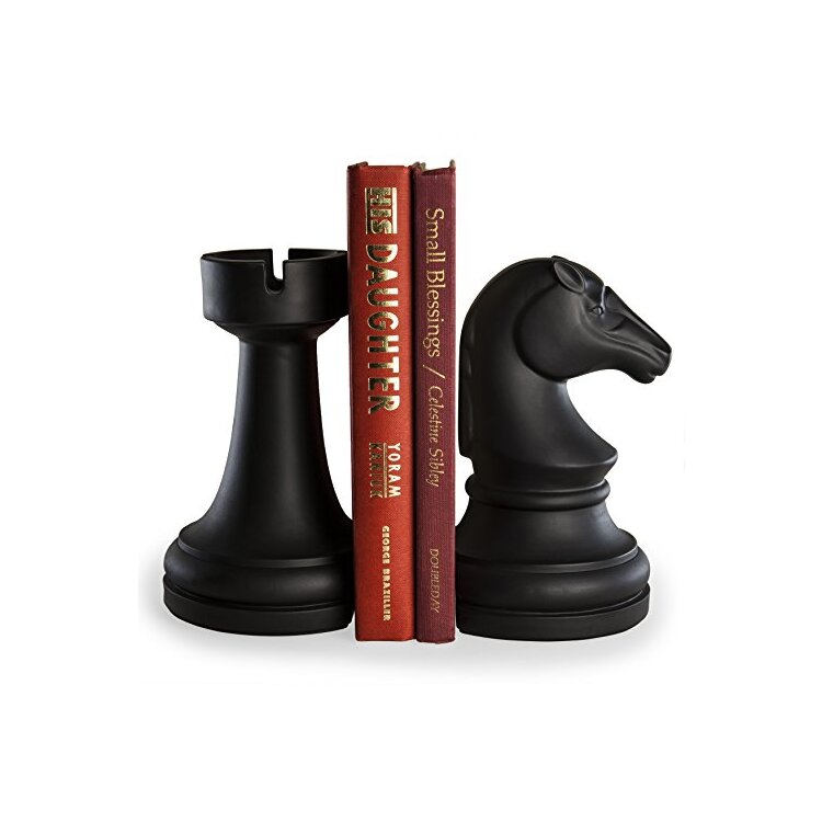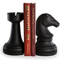 • Chess Rook vs Knight Bookend Set - Black Wooden Bookends for Home Office Desk Study - Floortex USA image - 1
