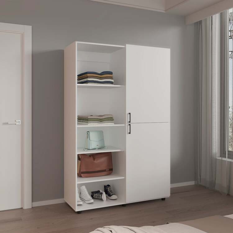 • DEPOT E-SHOP White Wardrobe with Doors & Shelves - Stylish Bedroom Storage image - 1