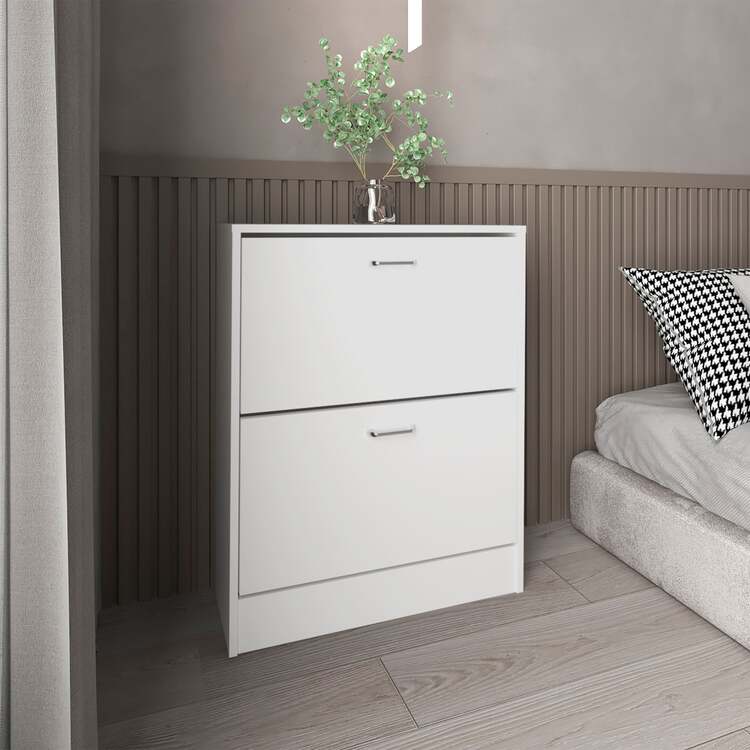 • DEPOT E-SHOP White Shoe Rack with Doors - Compact Shoe Storage Cabinet image - 1
