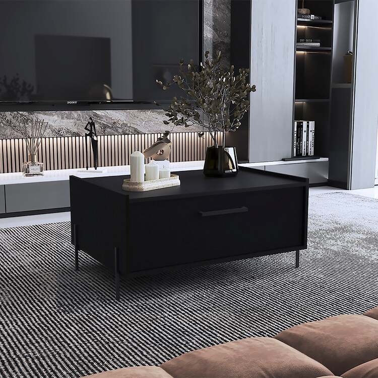 • DEPOT E-SHOP Modern Black Coffee Table with Shelf - Juneau Design image - 1