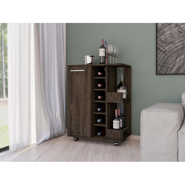 • DEPOT E-SHOP Modern Bar Cart with Shelves & Cabinet - Rolling Drinks Station image - 1