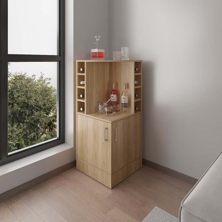 DEPOT E-SHOP Oak Bar Cabinet with Wine Storage - Norwich Design