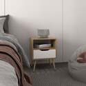• DEPOT E-SHOP Modern Nightstand with Drawer & Shelf - Natural Oak/White Finish image - 1