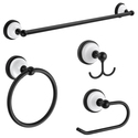 • Design House 188425 Savannah 4-Piece Bathroom Hardware Accessory Kit with Towel Bar, Towel Ring, Toilet Paper Holder, and Robe Hook, Matte Black and White image - 1