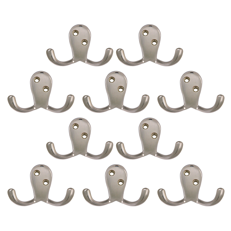 • Design House 207761 Wall-Mounted Double Hook for Coat Hat Towel Robe in Bathroom or Closet Satin Nickel 10-Pack image - 1