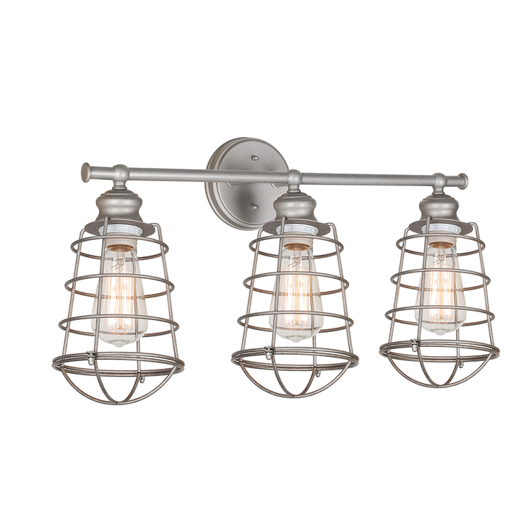 • Design House 519728 Ajax Industrial Modern 3-Light Indoor Bathroom Vanity Light with Metal Wire Cage Over the Mirror, Galvanized Steel image - 1