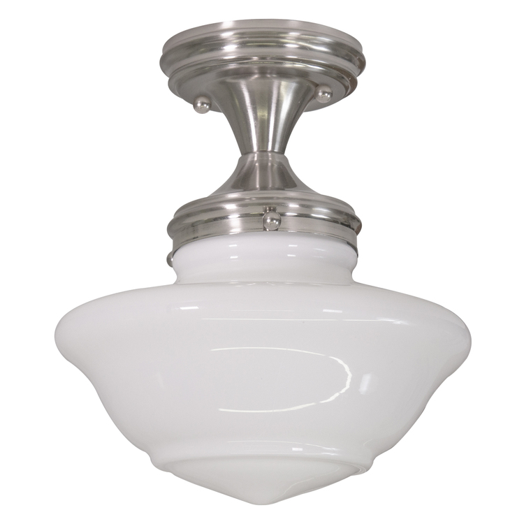 • Design House 577494 School Semi Flush Mount Modern Vintage Farm Indoor Dimmable Ceiling Light with White Glass for Entryway Hallway Kitchen Dining Bar Area, Satin Nickel image - 1