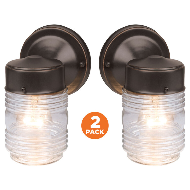 Design House 587311 Jelly Jar Classic 1-Light 2-Pack Indoor/Outdoor Wall Light with Clear Ribbed Glass for Entryway Porch Patio, Oil Rubbed Bronze