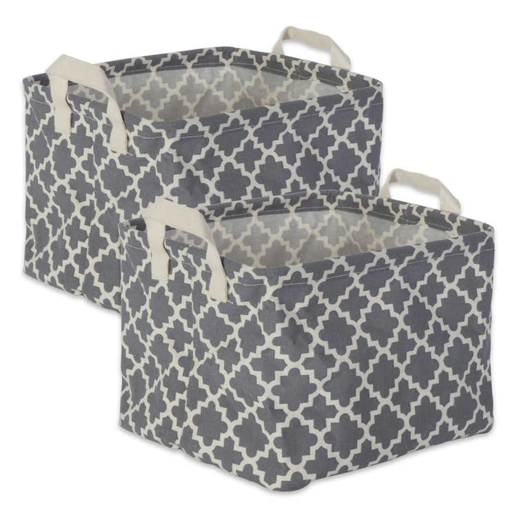• Gray Lattice Cotton Polyester Laundry Bins Large Rectangular 10.5x17.5x10 - Design Imports image - 1