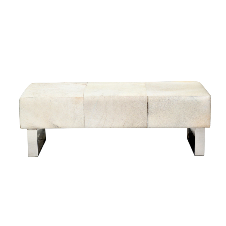 Design Living L48" Chrome Stainless Steel Bench With Grey Leather Seat