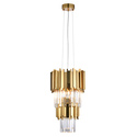 • Gold Finish Two Tier Pendant Light Fixture with Stainless Steel Frame and Clear Crystal Accents - Design Living image - 1