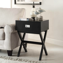 Modern End Table with Storage and Pine Wood Legs, Gray Finish - Convenience Concepts