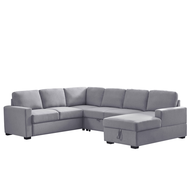 • Devion Furniture 115.5" Wide Fabric Linen Left Hand Facing Sectional Sleeper Sofa Bed image - 1