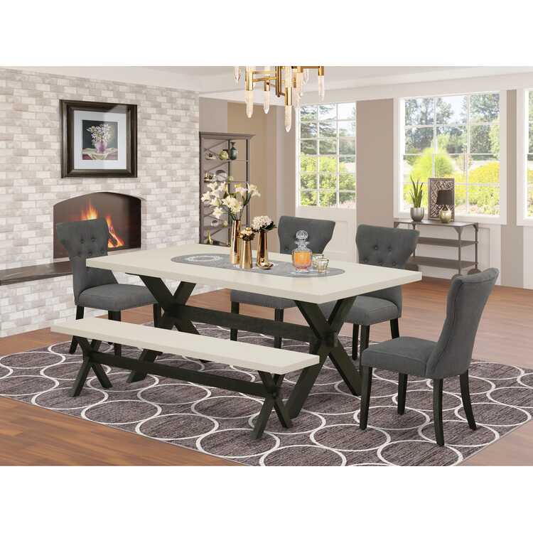 Dark Gotham Grey Linen Fabric Dining Set