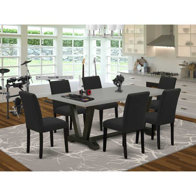 • Mid Century Modern Kitchen Dining Set 7-Piece Black Finish image - 1