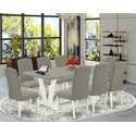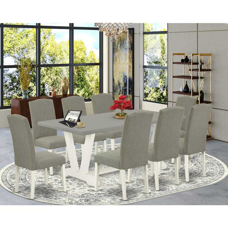 • Dining Set - Fashionable 9-Piece Linen Chairs & Cement Color Table image - 1