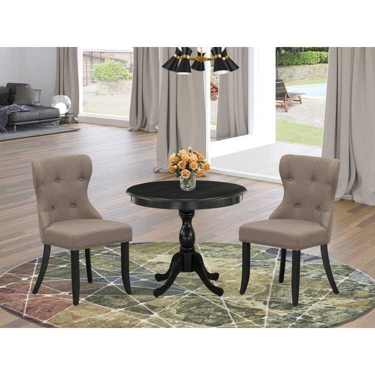 • Wire Brushed Black Dining Set 3 Piece Table Chairs image - 1