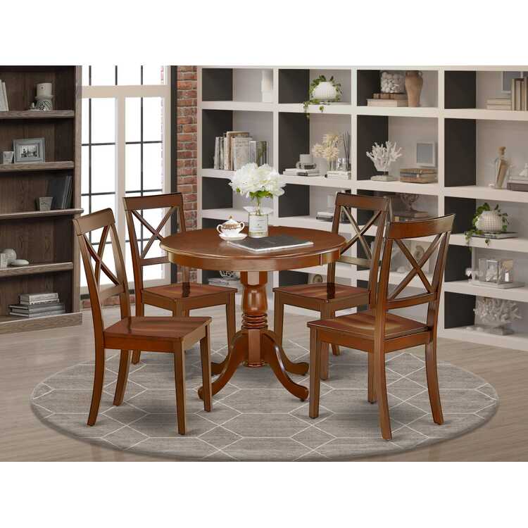 • East West Furniture ANBO5-MAH-W 5 Piece Dinette Set for 4 Includes a Round Kitchen Table with Pedestal and 4 Dining Room Chairs, 36x36 Inch, Mahogany image - 1