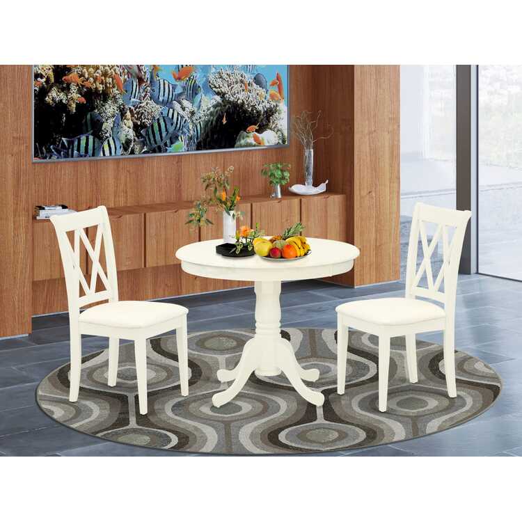 • Dinette Set Rounded Table Double X Back Chairs Linen White image - 1