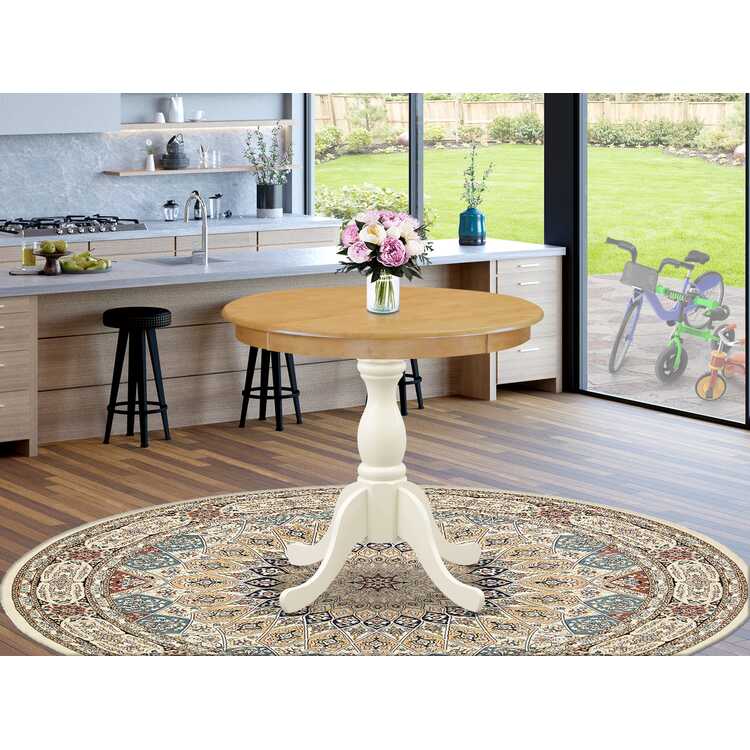 Round Pedestal Dining Table - Oak & Linen White Finish