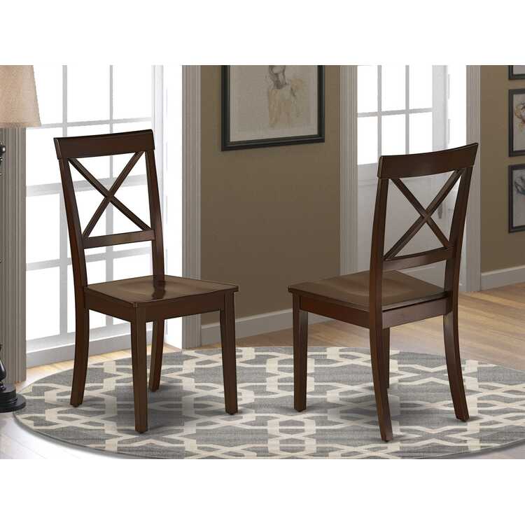 • East West Furniture BOC-MAH-W Boston Dining Chairs - Cross Back Wood Seat Kitchen Chairs, Set of 2, Mahogany image - 1
