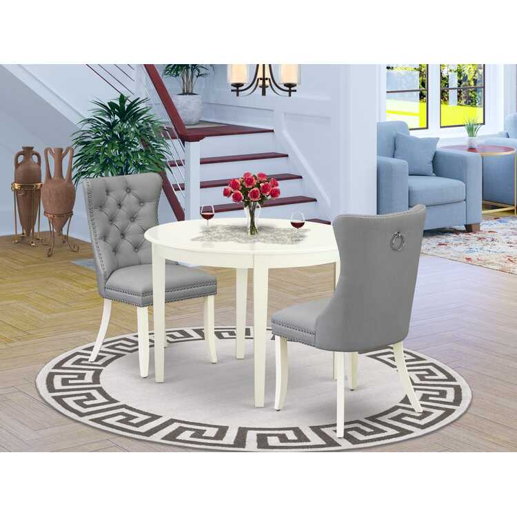 • Kitchen Dining Table Set Linen White Round Table & 2 Parson Chairs image - 1