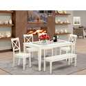 • 6 Person Dining Set with Linen White Table and Chairs Plus Bench - East West Furniture image - 1