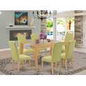 • Oak Dining Set 7Pc Lime Green Chairs Table image - 1