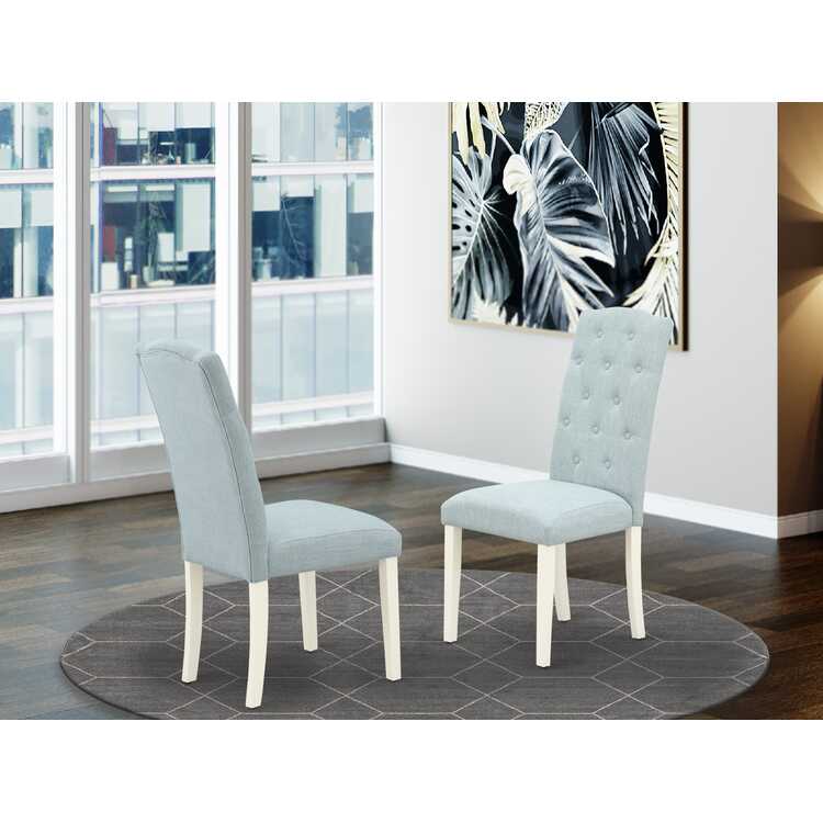 • East West Furniture CEP2T15 Celina Parson Chairs - Button Tufted Baby Blue Linen Fabric Upholstered Dining Chairs, Set of 2, Linen White image - 1