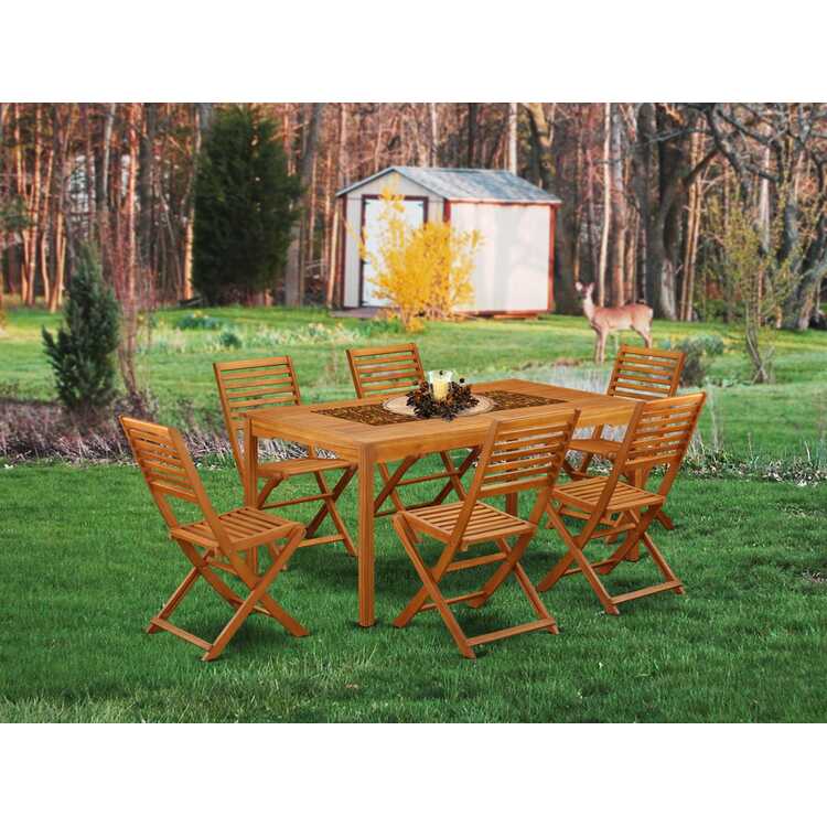 7-Piece Acacia Wood Outdoor Dining Set with Foldable Chairs and Table