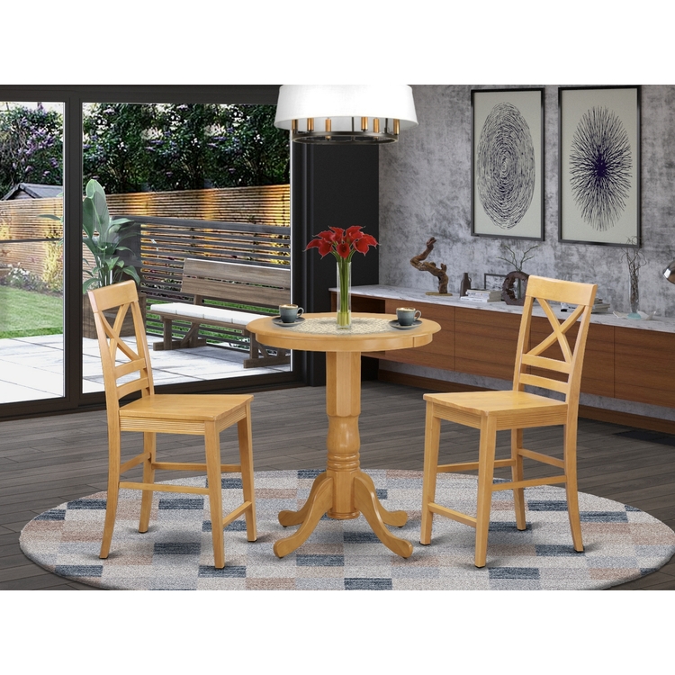 • Round Wood Top Counter Height Pub Table Set - Mahogany Finish 5 - Piece - East West Furniture image - 1