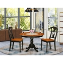 Round Dining Table Set & 4 Wood Seat Chairs in Black Cherry Finish
