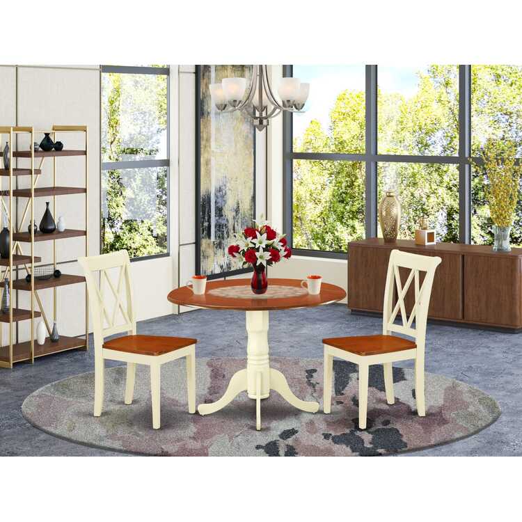 • East West Furniture DLCL3-BMK-W 3 Piece Dinette Set for Small Spaces Contains a Round Dining Table with Dropleaf and 2 Dining Chairs, 42x42 Inch, Buttermilk & Cherry image - 1