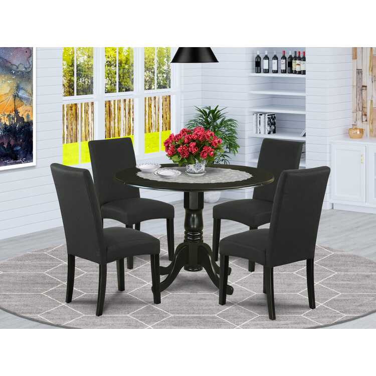 Modern 5 Piece Round Dining Set with Linen Chairs