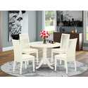 • Dining Set Round Table Drop Leaves 4 Linen Chair White Finish image - 1