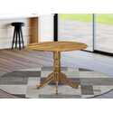 • 42" Dublin Round Dining Room Table Made of Acacia Wood with Two 9 Inch Drop Leaves - East West Furniture image - 1