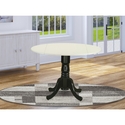East West Furniture DLT-LBK-TP Dublin Round Table with two 9" Drop Leaves in Linen White and Black Finish