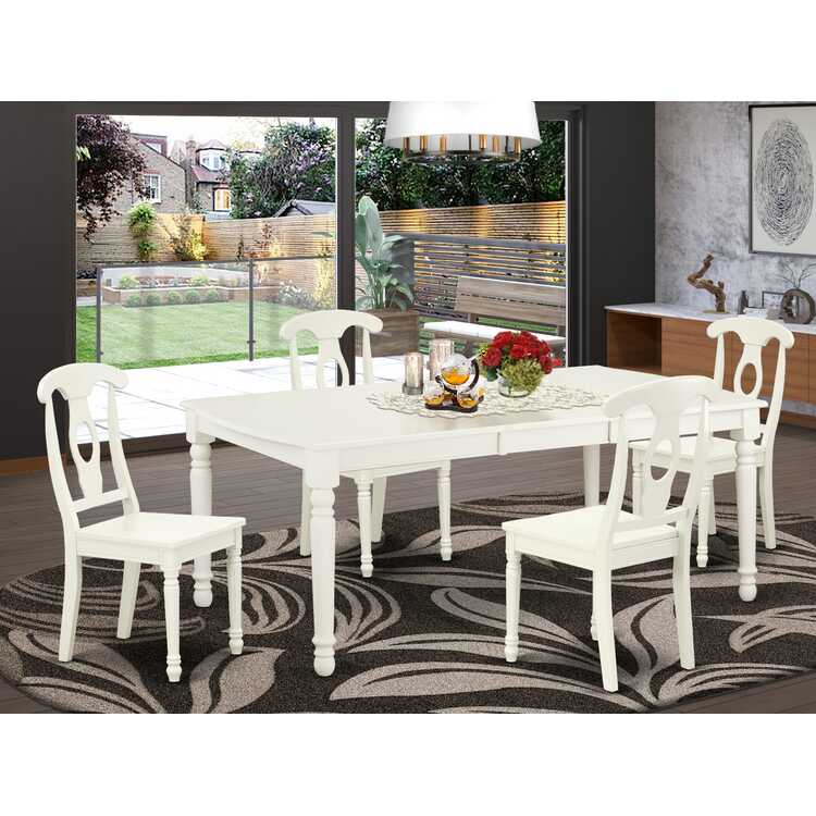 5PC Rectangular Dining Table Set - 60/78 inch Leaf and 4 Panel Back Chairs - East West Furniture