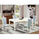 • Baby Blue Dining Set Linen Fabric White Wood Table 4 Chairs image - 1