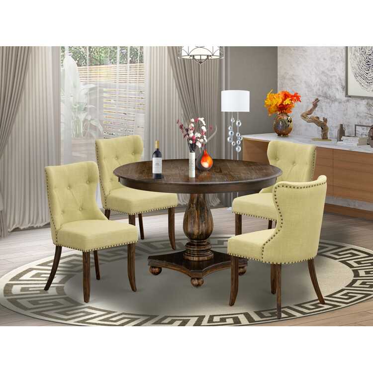 • 5 Piece Dinette Set - Round Table & 4 Linen Chairs image - 1