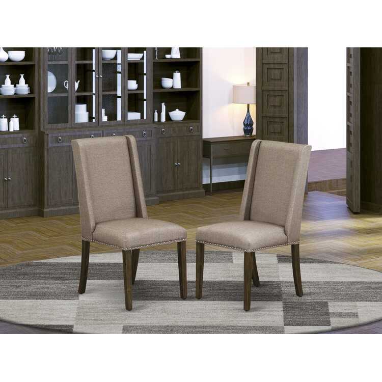 East West Furniture FLP7T16 Florence Parsons Dining Chairs - Nailhead Trim Dark Khaki Linen Fabric Padded Chairs, Set of 2, Jacobean