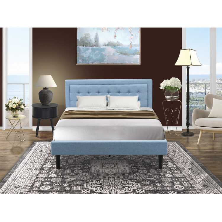 • Platform Bed & Nightstand Set - Denim Blue Fabric image - 1